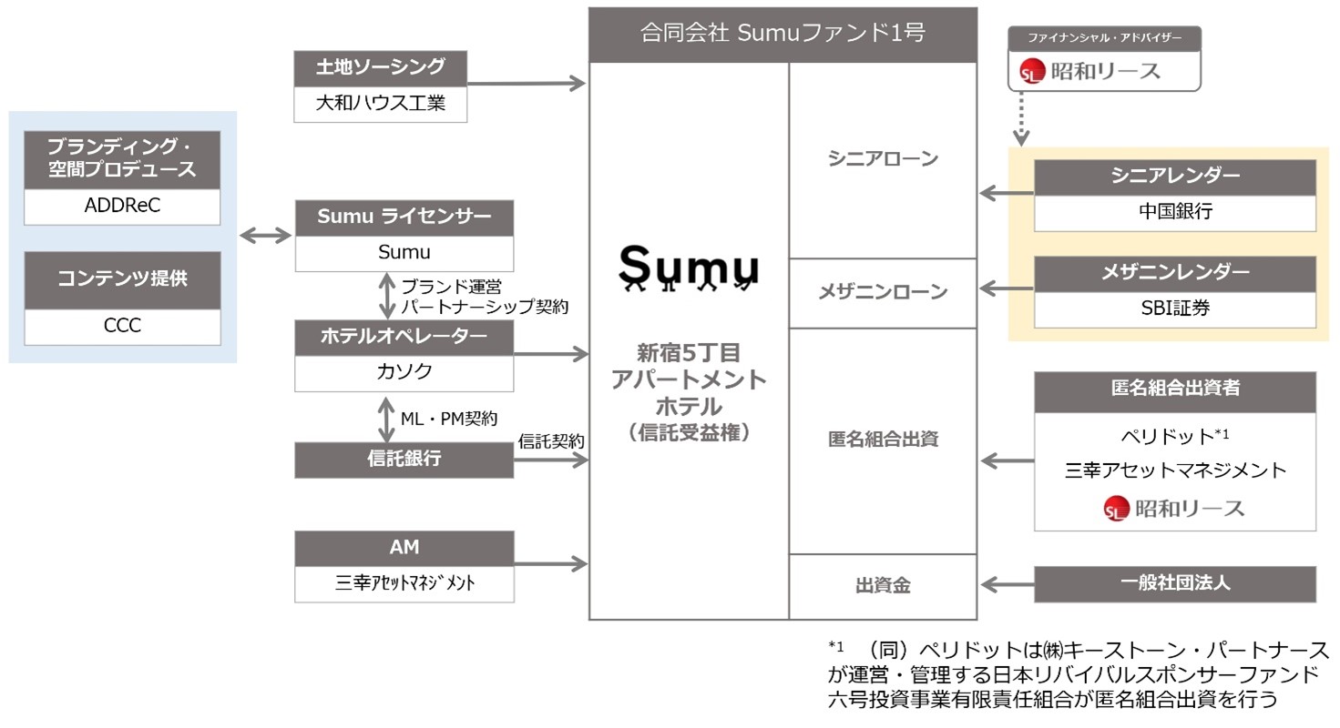 合同会社ペリドット (株式会社キーストーン・パートナース(東京都千代田区、代表取締役 堤 智章・小山 聡)が運営・管理する日本リバイバルスポンサーファンド六号投資事業有限責任組合が匿名組合出資をおこなう会社) 三幸アセットマネジメント株式会社(東京都中央区、代表取締役 武井 重夫) 昭和リース株式会社 |